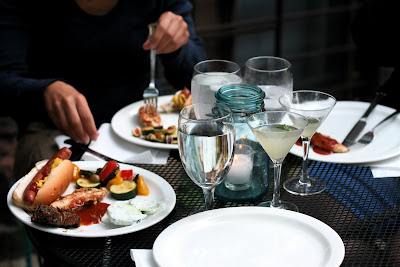 2. cooking over a charcoal grill & dining with friends on the sidewalk out front (#13 on the list)